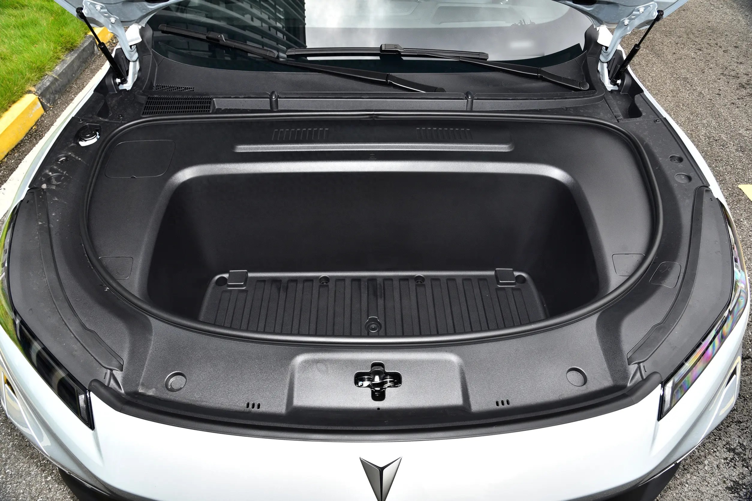 深蓝S05是支持手机蓝牙钥匙的,这对于经常忘记带车钥匙的朋友们来说很友好。来到车内之后,我差点都忘记了这是一台紧凑型SUV。车身的轴距为2880mm,所以内部的空间很宽敞。我的身高为178cm,落座于前后排腿部都能够自由活动,坐在后排的时候腿部距离前方座椅还有一拳多左右的距离,切换坐姿、跷二郎腿都没什么问题。该车一共有前后两个后备箱,储物空间非常丰富,包括中央扶手台下方、中控台下方以及车门两侧等都可以用来储物,平时女孩子的包包、化妆品等都可以收纳起来。将第二排座椅放倒之后不论是用来放行李箱还是躺在上面休息都很合适。