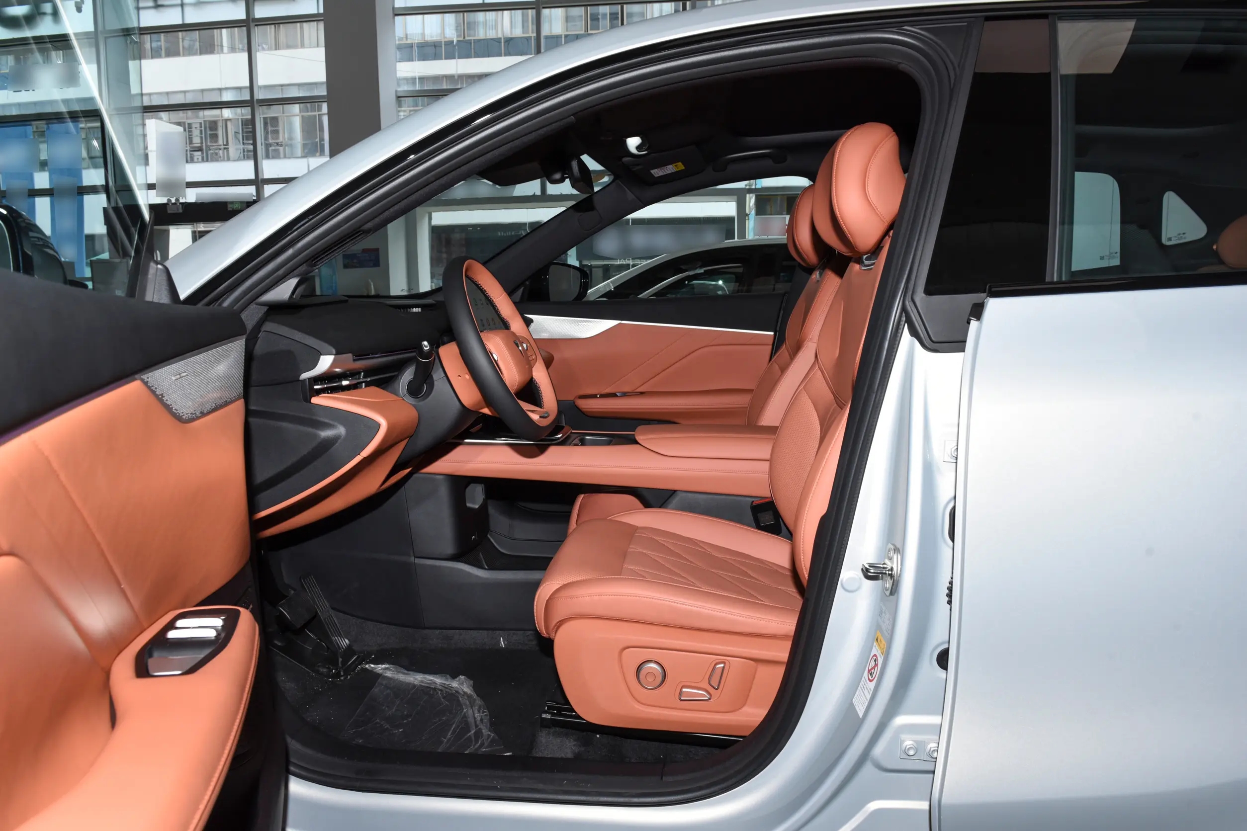 舒适的座舱给我带来了很不错的体验感。全车座椅都采用仿皮材质包裹而成,前排还给到了零重力座椅。我坐在上面打开腿托试了一下,感觉整个人的肌肉都放松下来了,还挺适合经常需要跑长途的朋友的。搭配上按摩功能就更舒服了,能够缓解疲惫感。不仅如此,前排还支持多向调节、加热、通风以及记忆,我们可以根据个人的需求来进行调整。注意到主副驾驶的上方都贴心的给到了带有照明效果的化妆镜,女生坐在副驾驶上可以美美的补妆,夜晚也不用担心光线昏暗。